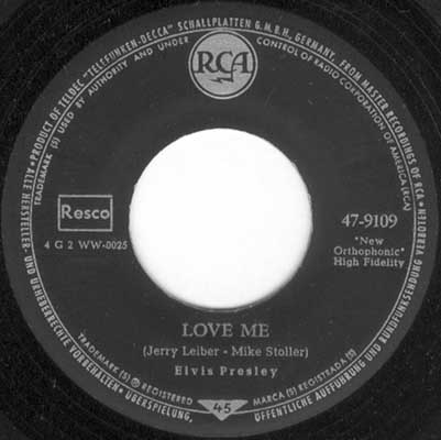 | Very rare edition for US staff stationed in West Germany. The record itself is a regular German first pressing but the label tries to emulate the US RCA Victor "Nipper, dog on top" trademark, which was not allowed for RCA to use in Europe, where it belonged to His Master's Voice (HMV). |