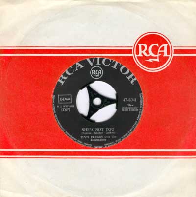 | Final 1967 pressing on the fourth German RCA Victor (v4) label. This record was deleted on December 4, 1967. No picture sleeves were available. Note the December 1968 stamp on the sleeve. |