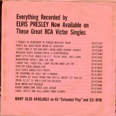 as SUN 244. Note that both of Chapel's titles were written by the same writer team that wrote 'Heartbreak hotel' for Elvis.
