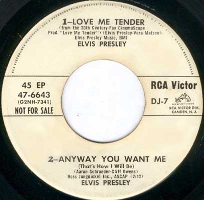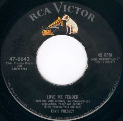 First edition, released in October 1956. 'Love me tender' entered Billboard's Hot 100 on October 10 at the #1 position