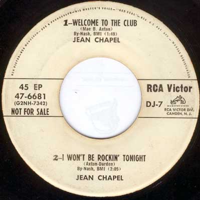 Rare promotional double-single sent exclusively to DJ's in October 1956. Jean Chapel's record had previously been released
