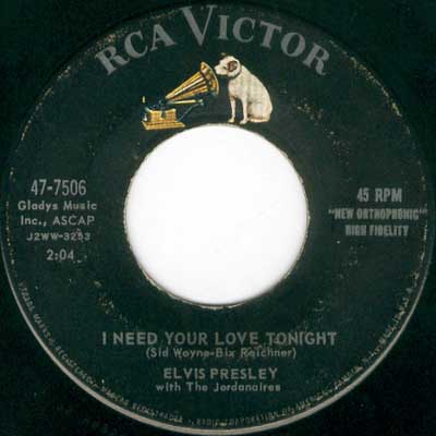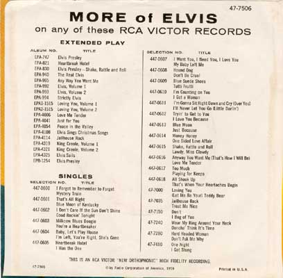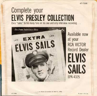 First edition, released March 10, 1959 (Elvis Sails). The back side received a revised layout in April (text).