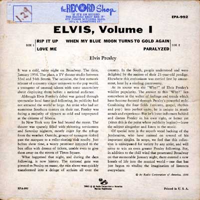 Rare version of the first release, Rockaway pressing (-4S/-4S), black RCA label with lines.