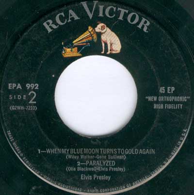 Very first release, Indianapolis pressing (-1S/-1S), black RCA with dog on top.