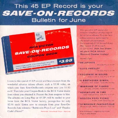 Save-on-records bulletin for June 1956. Issued as part of an RCA factory direct mail order discount program.